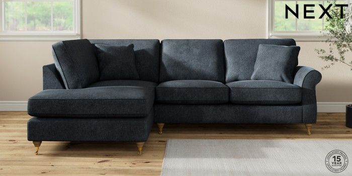 7.2.10 Ashford Medium Corner Chaise - Left Hand Plush Chenille Slate Blue Castor - Light | Made Click here to use our website with more accessibility support, for example screen readers