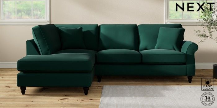 7.2.10 Ashford Medium Corner Chaise - Left Hand Plush Velvet Easy Clean Bottle Green Low Turned - Dark | Made Click here to use our website with more accessibility support, for example screen readers
