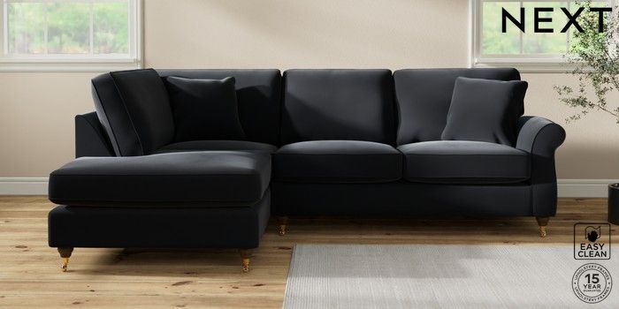7.2.10 Ashford Medium Corner Chaise - Left Hand Plush Velvet Easy Clean Charcoal Grey Castor - Mid | Made Click here to use our website with more accessibility support, for example screen readers