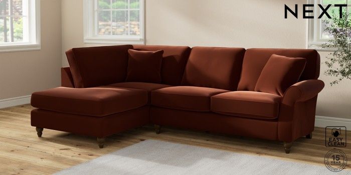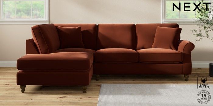 7.2.10 Ashford Medium Corner Chaise - Left Hand Plush Velvet Easy Clean Ginger Orange Low Turned - Mid | Made Click here to use our website with more accessibility support, for example screen readers