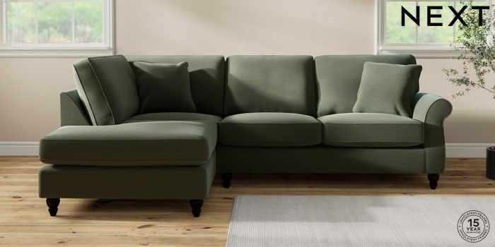 7.2.10 Ashford Medium Corner Chaise - Left Hand Relaxed Linen Look Dark Green Low Turned - Dark | Made Click here to use our website with more accessibility support, for example screen readers