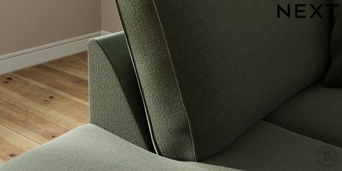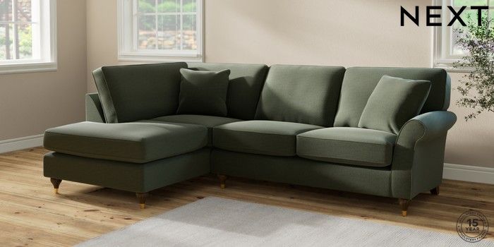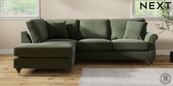 7.2.10 Ashford Medium Corner Chaise - Left Hand Relaxed Linen Look Dark Green Modern Turned Metal Cap - Mid | Made Click here to use our website with more accessibility support, for example screen readers