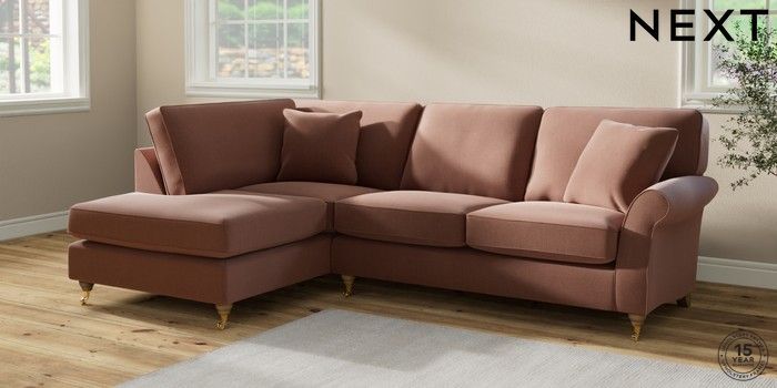 7.2.10 Ashford Medium Corner Chaise - Left Hand Relaxed Linen Look Light Rust Brown Castor - Light | Made Click here to use our website with more accessibility support, for example screen readers