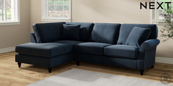 7.2.10 Ashford Medium Corner Chaise - Left Hand Ripple Chenille Dark Blue Low Turned - Dark | Made Click here to use our website with more accessibility support, for example screen readers