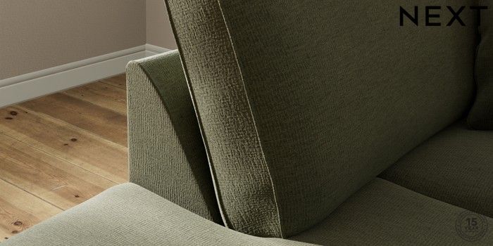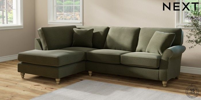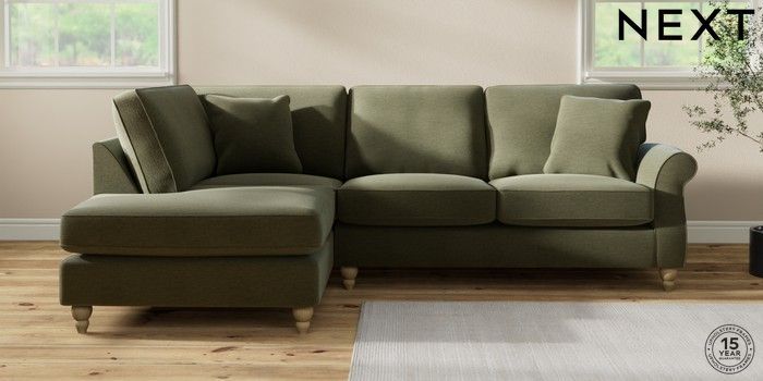 7.2.10 Ashford Medium Corner Chaise - Left Hand Ripple Chenille Mid Moss Green Low Turned - Light | Made Click here to use our website with more accessibility support, for example screen readers
