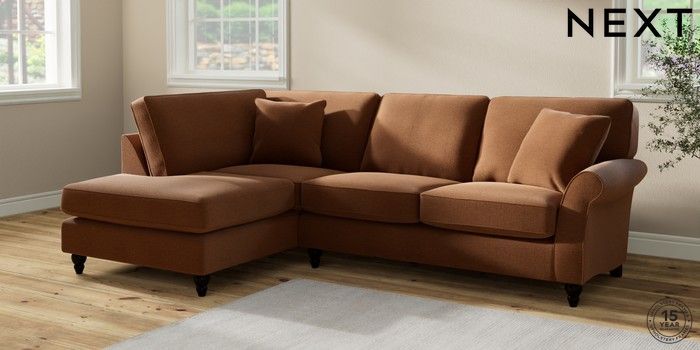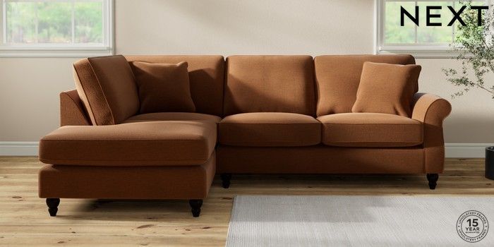 7.2.10 Ashford Medium Corner Chaise - Left Hand Ripple Chenille Mid Rust Brown Low Turned - Dark | Made Click here to use our website with more accessibility support, for example screen readers