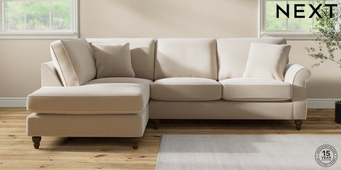 7.2.10 Ashford Medium Corner Chaise - Left Hand Studio Chenille Oyster Low Turned - Mid | Made Click here to use our website with more accessibility support, for example screen readers