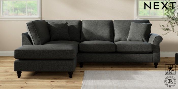 7.2.10 Ashford Medium Corner Chaise - Left Hand Tweedy Blend Easy Clean Charcoal Grey Low Turned - Dark | Made Click here to use our website with more accessibility support, for example screen readers