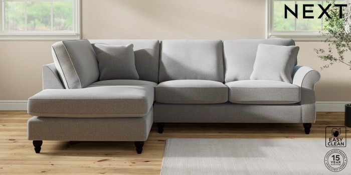7.2.10 Ashford Medium Corner Chaise - Left Hand Tweedy Blend Easy Clean Light Silver Grey Low Turned - Dark | Made Click here to use our website with more accessibility support, for example screen readers
