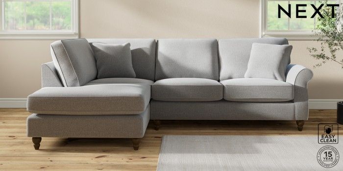 7.2.10 Ashford Medium Corner Chaise - Left Hand Tweedy Blend Easy Clean Light Silver Grey Low Turned - Mid | Made Click here to use our website with more accessibility support, for example screen readers