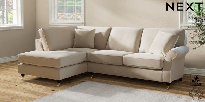 7.2.10 Ashford Medium Corner Chaise - Left Hand Tweedy Blend Easy Clean Oyster Castor - Dark | Made Click here to use our website with more accessibility support, for example screen readers