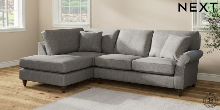 7.2.10 Ashford Medium Corner Chaise - Left Hand Tweedy Chenille Mid Grey Low Turned - Mid | Made Click here to use our website with more accessibility support, for example screen readers