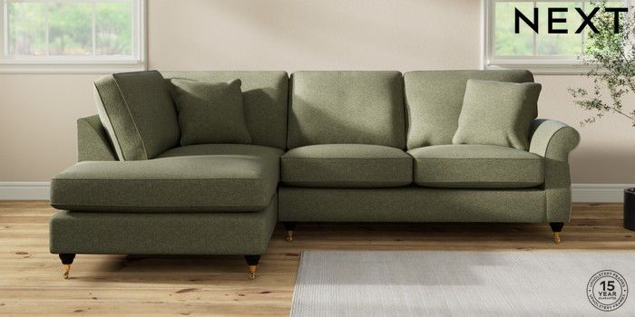 7.2.10 Ashford Medium Corner Chaise - Left Hand Tweedy Chenille Mid Moss Green Castor - Dark | Made Click here to use our website with more accessibility support, for example screen readers