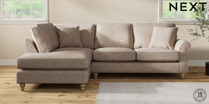7.2.10 Ashford Medium Corner Chaise - Left Hand Tweedy Chenille Mid Natural Low Turned - Light | Made Click here to use our website with more accessibility support, for example screen readers
