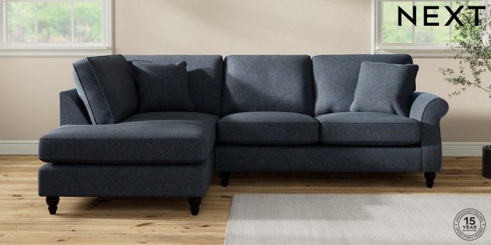 7.2.10 Ashford Medium Corner Chaise - Left Hand Tweedy Chenille Navy Blue Low Turned - Dark | Made Click here to use our website with more accessibility support, for example screen readers