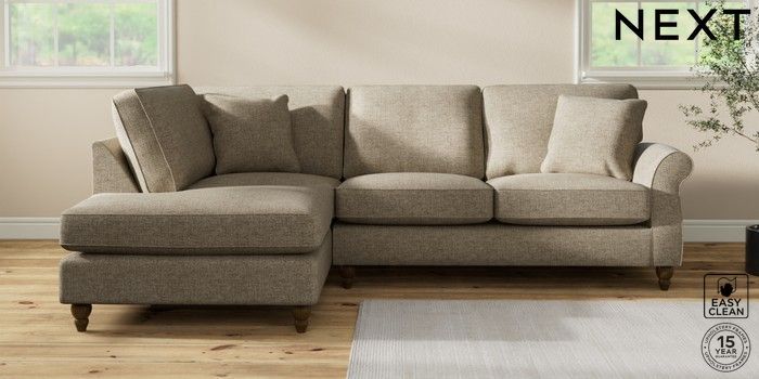 7.2.10 Ashford Medium Corner Chaise - Left Hand Woven Chenille Easy Clean Mid Natural Low Turned - Mid | Made Click here to use our website with more accessibility support, for example screen readers
