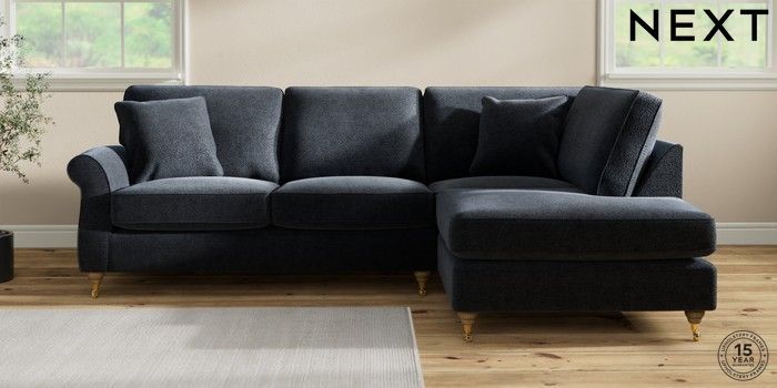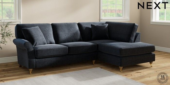 7.2.10 Ashford Medium Corner Chaise - Right Hand Boucle Chenille Dark Slate Blue Castor - Light | Made Click here to use our website with more accessibility support, for example screen readers