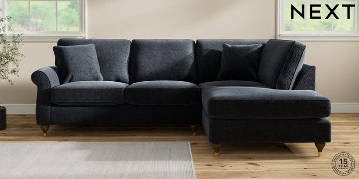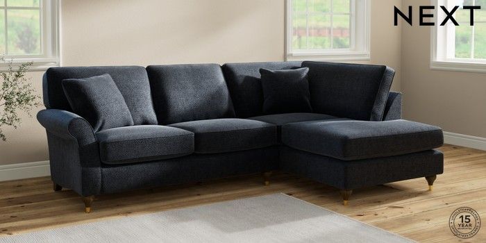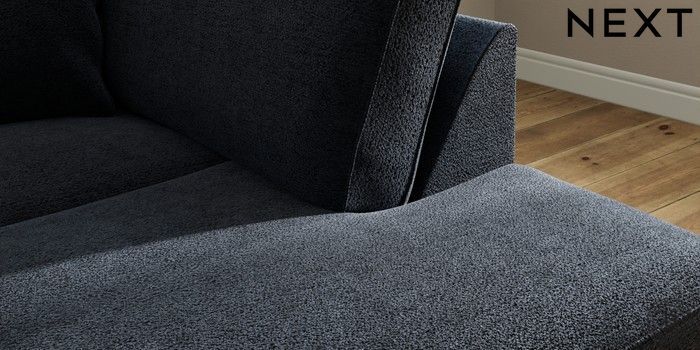 7.2.10 Ashford Medium Corner Chaise - Right Hand Boucle Chenille Dark Slate Blue Modern Turned Metal Cap - Mid | Made Click here to use our website with more accessibility support, for example screen readers