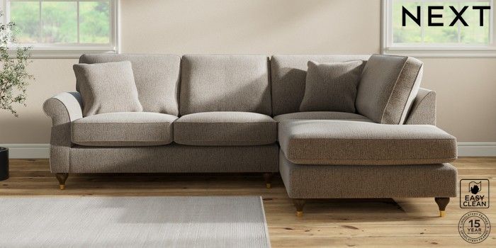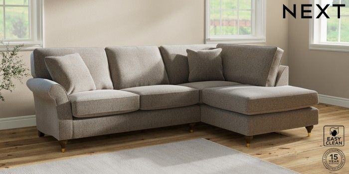 7.2.10 Ashford Medium Corner Chaise - Right Hand Chunky Boucle Easy Clean Dove Modern Turned Metal Cap - Mid | Made Click here to use our website with more accessibility support, for example screen readers