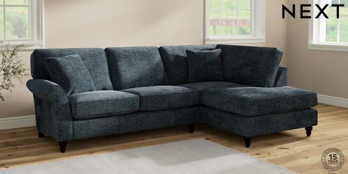 7.2.10 Ashford Medium Corner Chaise - Right Hand Chunky Chenille Dark Navy Blue Low Turned - Dark | Made Click here to use our website with more accessibility support, for example screen readers