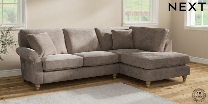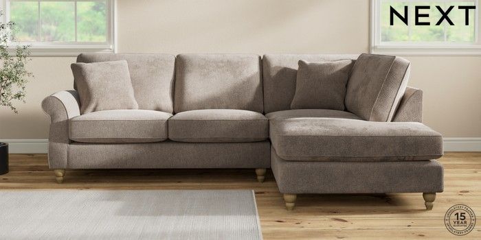 7.2.10 Ashford Medium Corner Chaise - Right Hand Chunky Chenille Light Dove Low Turned - Light | Made Click here to use our website with more accessibility support, for example screen readers