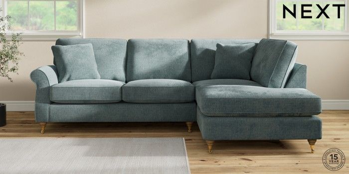 7.2.10 Ashford Medium Corner Chaise - Right Hand Chunky Chenille Light Teal Green Castor - Light | Made Click here to use our website with more accessibility support, for example screen readers