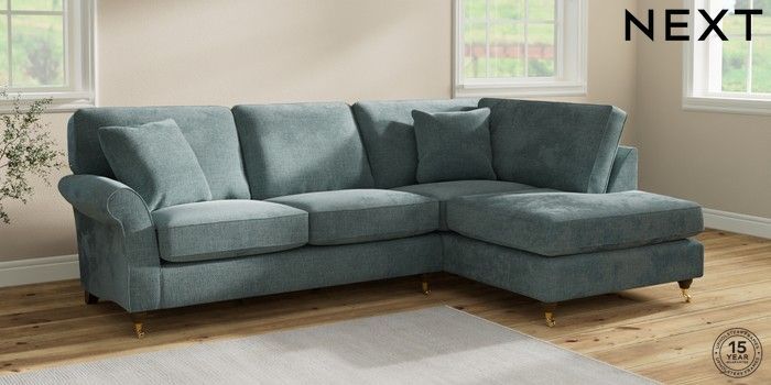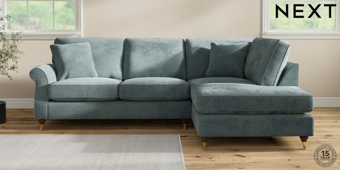 7.2.10 Ashford Medium Corner Chaise - Right Hand Chunky Chenille Light Teal Green Castor - Mid | Made Click here to use our website with more accessibility support, for example screen readers
