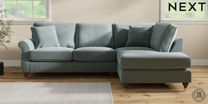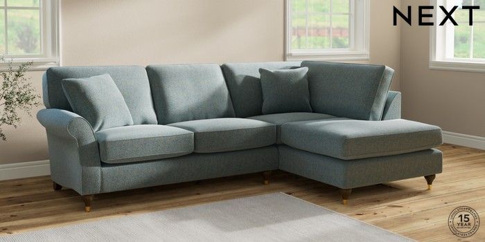 7.2.10 Ashford Medium Corner Chaise - Right Hand Chunky Marl Mid Blue Modern Turned Metal Cap - Mid | Made Click here to use our website with more accessibility support, for example screen readers