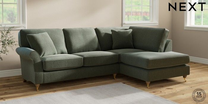 7.2.10 Ashford Medium Corner Chaise - Right Hand Chunky Texture Mid Forest Green Castor - Light | Made Click here to use our website with more accessibility support, for example screen readers