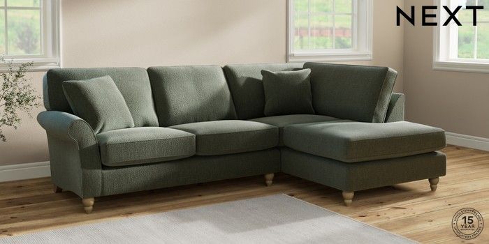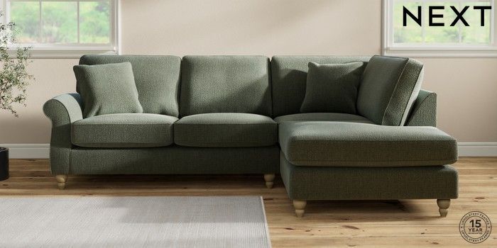 7.2.10 Ashford Medium Corner Chaise - Right Hand Chunky Texture Mid Forest Green Low Turned - Light | Made Click here to use our website with more accessibility support, for example screen readers