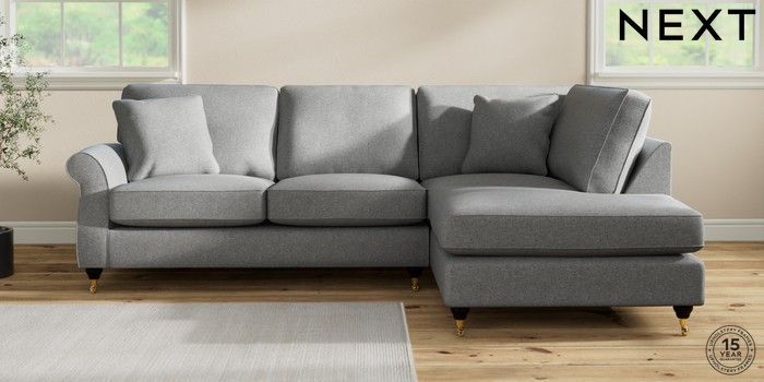7.2.10 Ashford Medium Corner Chaise - Right Hand Chunky Weave Mid Grey Castor - Dark | Made Click here to use our website with more accessibility support, for example screen readers