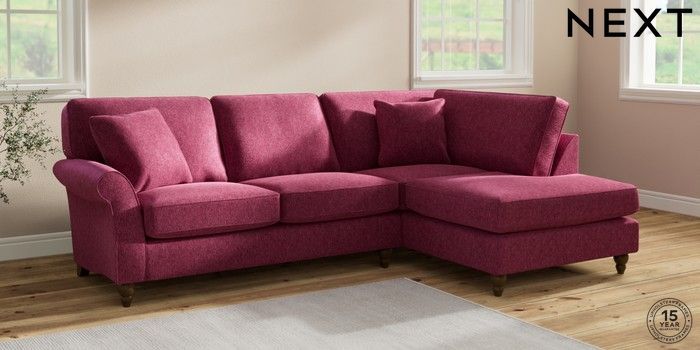 7.2.10 Ashford Medium Corner Chaise - Right Hand Cotswold Chenille Dark Raspberry Pink Low Turned - Mid | Made Click here to use our website with more accessibility support, for example screen readers