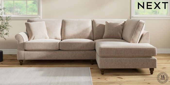 7.2.10 Ashford Medium Corner Chaise - Right Hand Cotswold Chenille Light Natural Low Turned - Mid | Made Click here to use our website with more accessibility support, for example screen readers