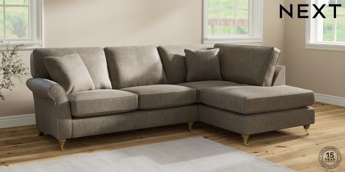 7.2.10 Ashford Medium Corner Chaise - Right Hand Cotswold Chenille Mid Mink Brown Castor - Light | Made Click here to use our website with more accessibility support, for example screen readers