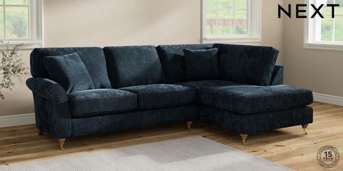 7.2.10 Ashford Medium Corner Chaise - Right Hand Distressed Velour Midnight Blue Castor - Light | Made Click here to use our website with more accessibility support, for example screen readers
