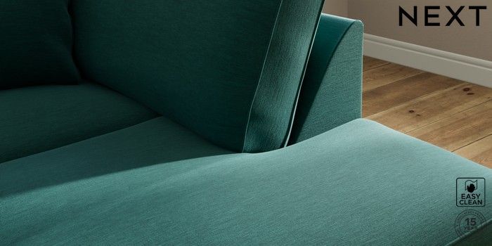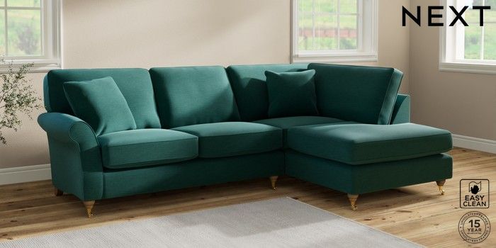 7.2.10 Ashford Medium Corner Chaise - Right Hand Fine Chenille Easy Clean Dark Juniper Green Castor - Light | Made Click here to use our website with more accessibility support, for example screen readers