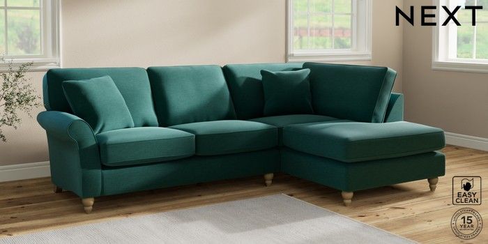 7.2.10 Ashford Medium Corner Chaise - Right Hand Fine Chenille Easy Clean Dark Juniper Green Low Turned - Light | Made Click here to use our website with more accessibility support, for example screen readers