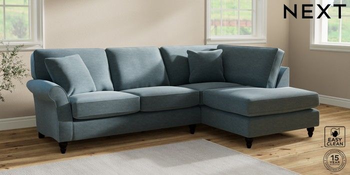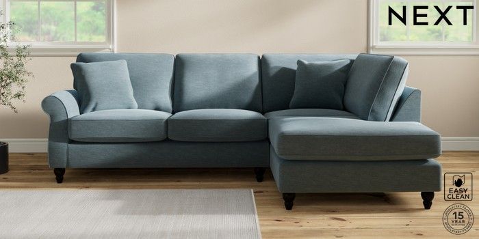 7.2.10 Ashford Medium Corner Chaise - Right Hand Fine Chenille Easy Clean Mid Blue Low Turned - Dark | Made Click here to use our website with more accessibility support, for example screen readers