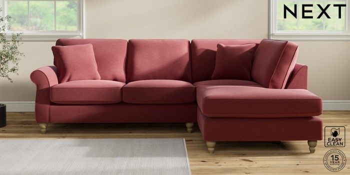 7.2.10 Ashford Medium Corner Chaise - Right Hand Fine Chenille Easy Clean Mid Pink Low Turned - Light | Made Click here to use our website with more accessibility support, for example screen readers