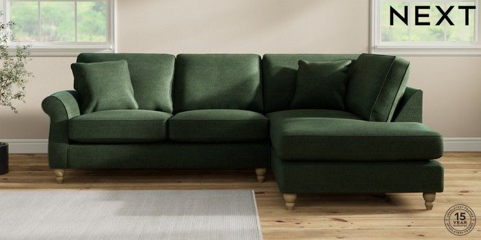 7.2.10 Ashford Medium Corner Chaise - Right Hand Luxe Chenille Dark Green Low Turned - Light | Made Click here to use our website with more accessibility support, for example screen readers