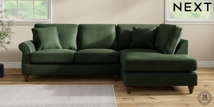 7.2.10 Ashford Medium Corner Chaise - Right Hand Luxe Chenille Dark Green Low Turned - Mid | Made Click here to use our website with more accessibility support, for example screen readers