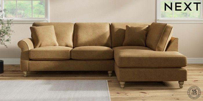 7.2.10 Ashford Medium Corner Chaise - Right Hand Luxe Chenille Honey Yellow Low Turned - Light | Made Click here to use our website with more accessibility support, for example screen readers