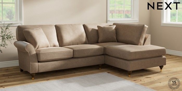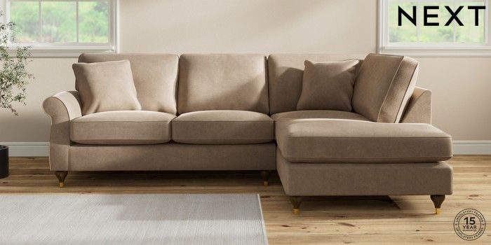 7.2.10 Ashford Medium Corner Chaise - Right Hand Luxe Chenille Mid Camel Beige Modern Turned Metal Cap - Mid | Made Click here to use our website with more accessibility support, for example screen readers