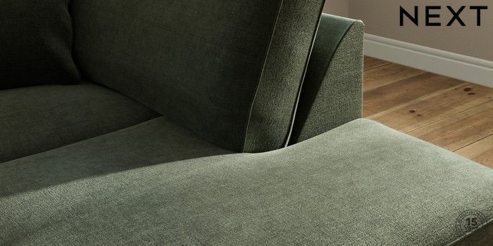 7.2.10 Ashford Medium Corner Chaise - Right Hand Luxe Chenille Mid Green Castor - Dark | Made Click here to use our website with more accessibility support, for example screen readers