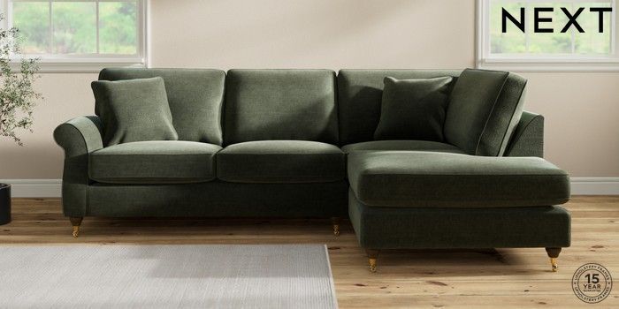 7.2.10 Ashford Medium Corner Chaise - Right Hand Luxe Chenille Mid Green Castor - Mid | Made Click here to use our website with more accessibility support, for example screen readers