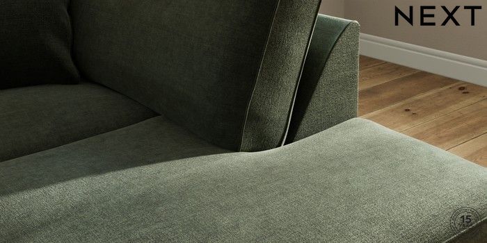 7.2.10 Ashford Medium Corner Chaise - Right Hand Luxe Chenille Mid Green Low Turned - Dark | Made Click here to use our website with more accessibility support, for example screen readers