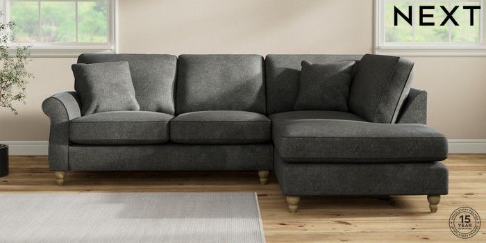 7.2.10 Ashford Medium Corner Chaise - Right Hand Plush Chenille Dark Grey Low Turned - Light | Made Click here to use our website with more accessibility support, for example screen readers