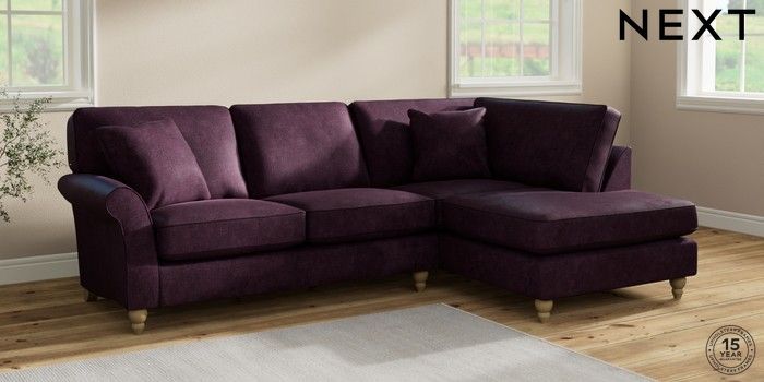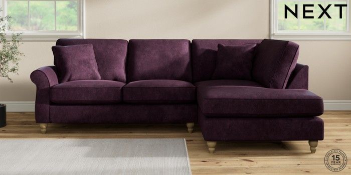 7.2.10 Ashford Medium Corner Chaise - Right Hand Plush Chenille Dark Plum Purple Low Turned - Light | Made Click here to use our website with more accessibility support, for example screen readers