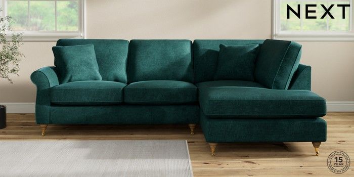 7.2.10 Ashford Medium Corner Chaise - Right Hand Plush Chenille Dark Teal Green Castor - Light | Made Click here to use our website with more accessibility support, for example screen readers