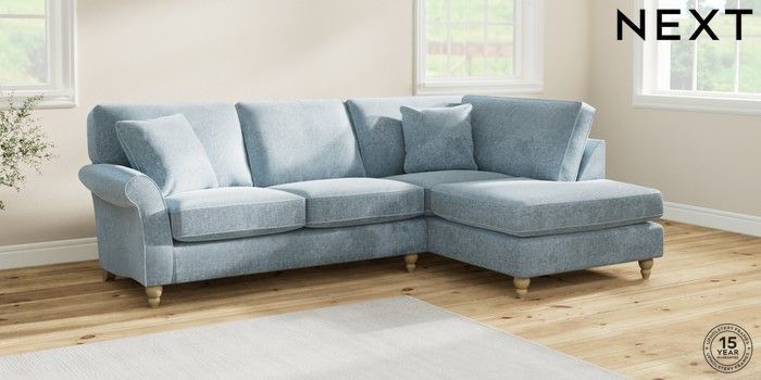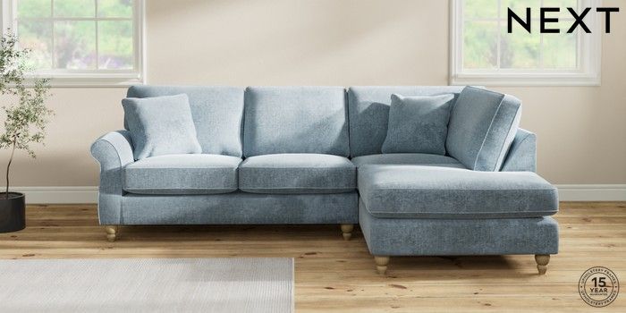7.2.10 Ashford Medium Corner Chaise - Right Hand Plush Chenille Light Blue Low Turned - Light | Made Click here to use our website with more accessibility support, for example screen readers